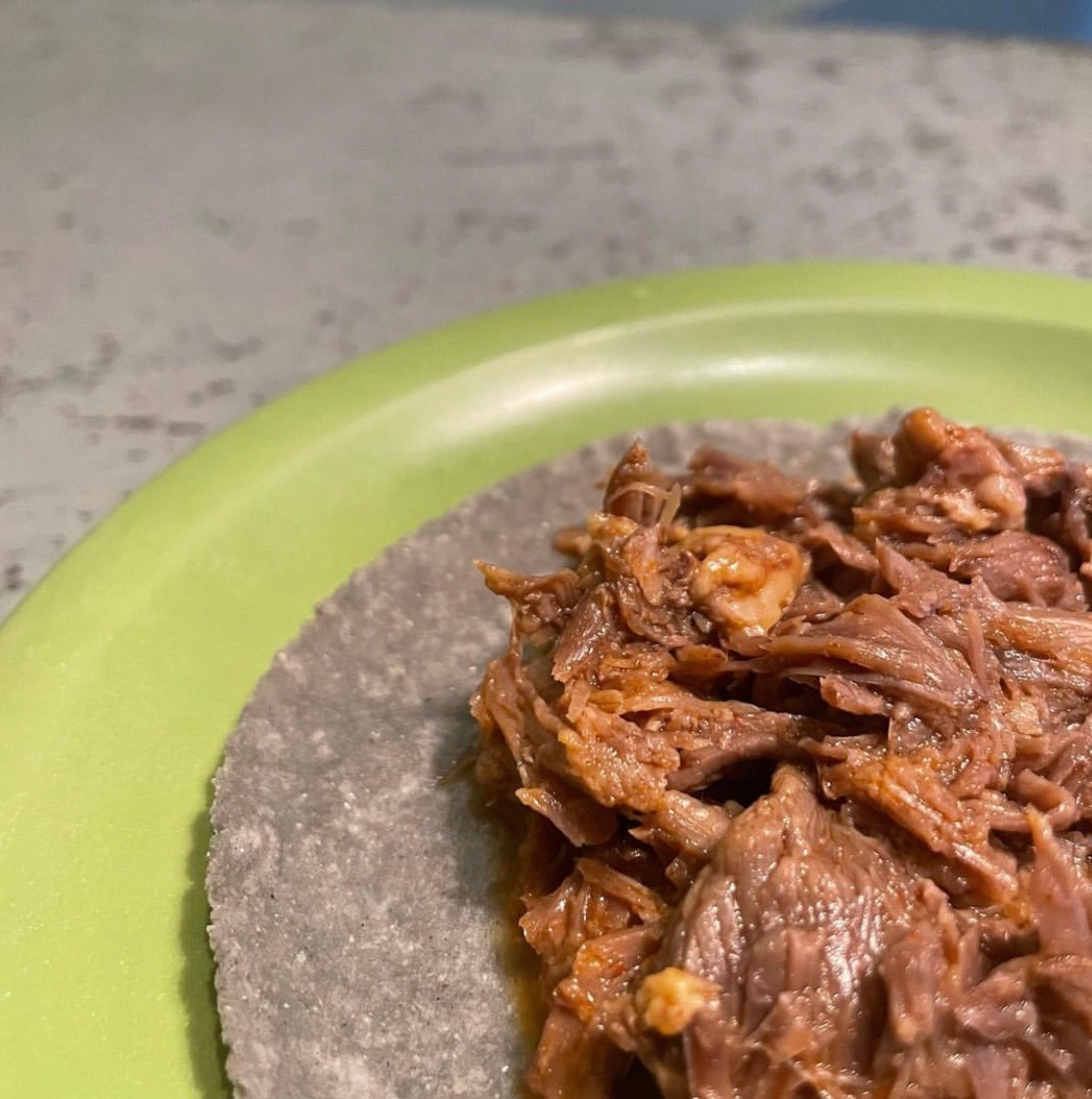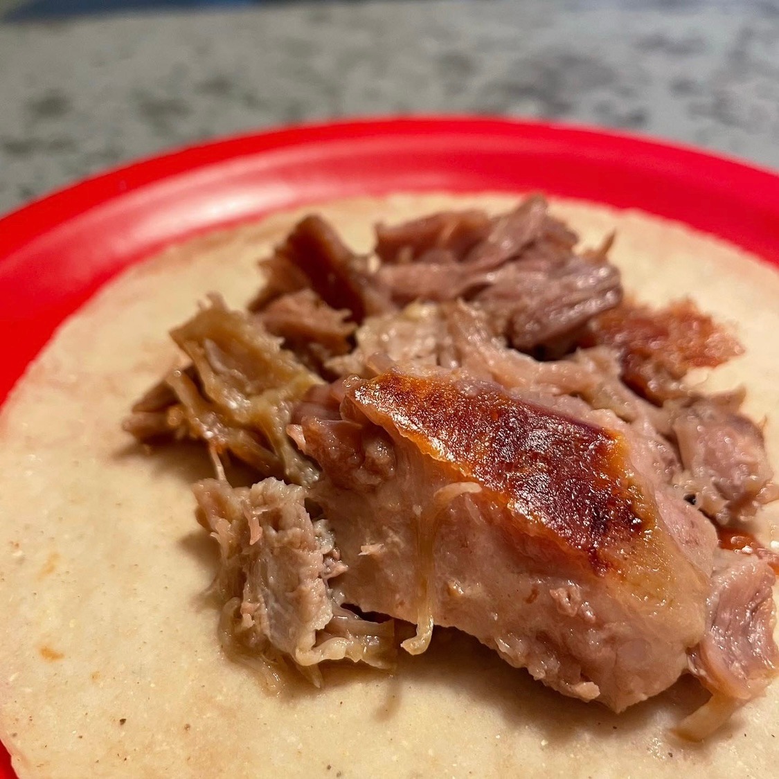 (豚肉をラードで蒸し煮にしたものでTACOS の具では定番のもの)